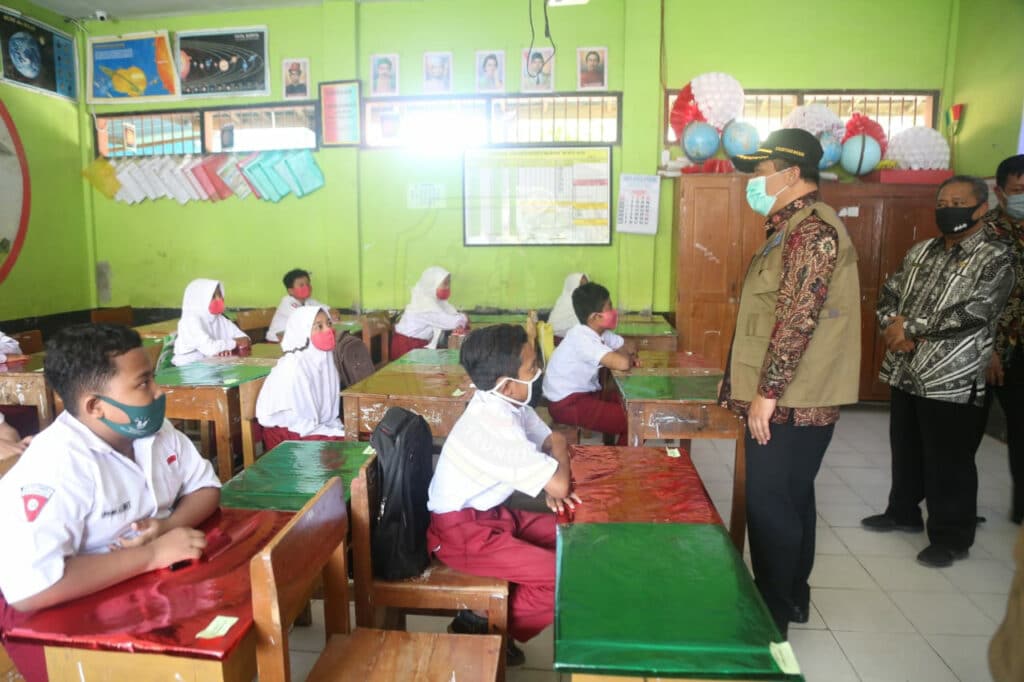 Sekretaris Daerah (Sekda) Kabupaten Sampang, H. Yuliadi Setiawan melaksanakan Monitoring Pembelajaran Tatap Muka (PTM) tahap 3 SDN dan SMPN di Kab. Sampang, Selasa (6/10/20) pagi.